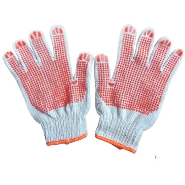 Phủ đều trên lòng bàn tay là hạt nhựa PVC màu đỏ giúp cầm nắm các vật chắc chắn hơn đặc biệt trong môi trường trơn trượt.